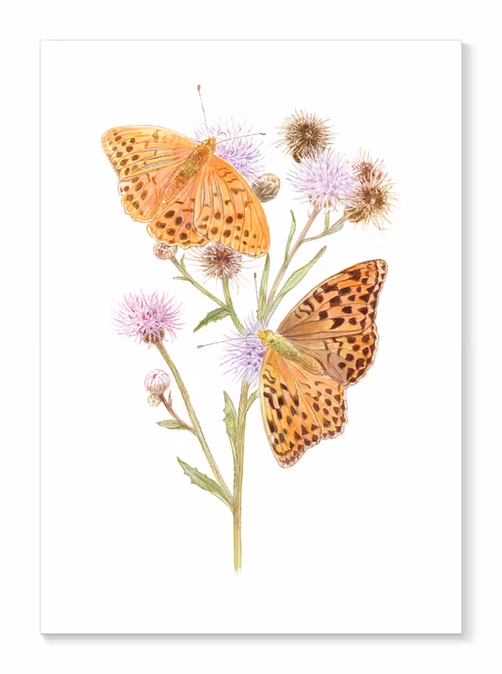 Silverstreckad pärlemorfjäril Artnr: 151Storlek: 10,5x14,8 cmPapper: 250gr halvmatt kvalitetspapperFärg: NaturvitLevereras tillsammans med kuvert i en cellofanpåse. 35 kr LÄGG I VARUKORGEN